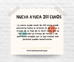 Hasta el próximo 31.03.2023 se puede solicitar la nueva ayuda anual de 200 euros a través de la web de la AEAT. ¿Quien puede solicitarla?